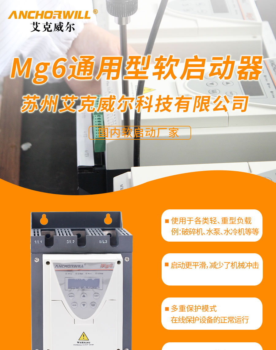 Mg6通用型軟起動器是一種集電機軟起動、軟停車和多保護功能于一體、可用于由恒速交流電動機作為運轉動力的起停裝置。